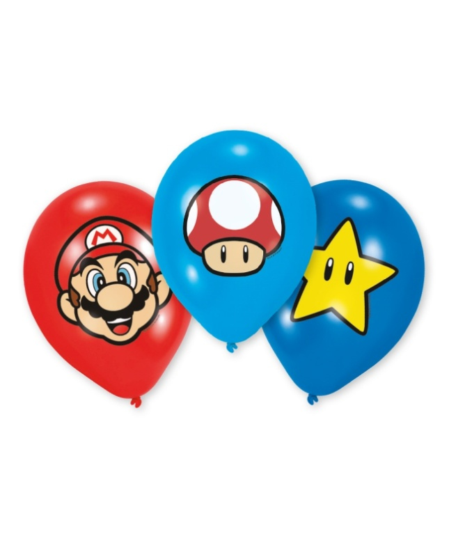 Paquete 6 globos de látex Super Mario Bros